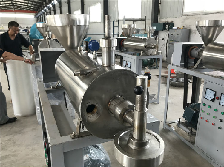 1、每天工作前機械預熱,保養(yǎng)完畢后,投料時先不要急于安裝磨具,先啟動機械將機械內(nèi)部余留剩料擠壓出來,擠壓出的圓柱呈軟料透明狀時在將磨具固定,進行正常作業(yè)。這樣的工序可以避免機械啟動后出條不均勻的情況。